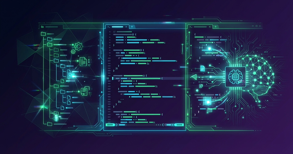 最終的に目指すのは、以下の 3 ペイン IDE レイアウトです。