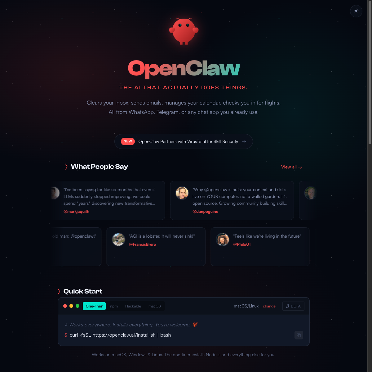 curl -fsSL https://openclaw.ai/install.sh | bash